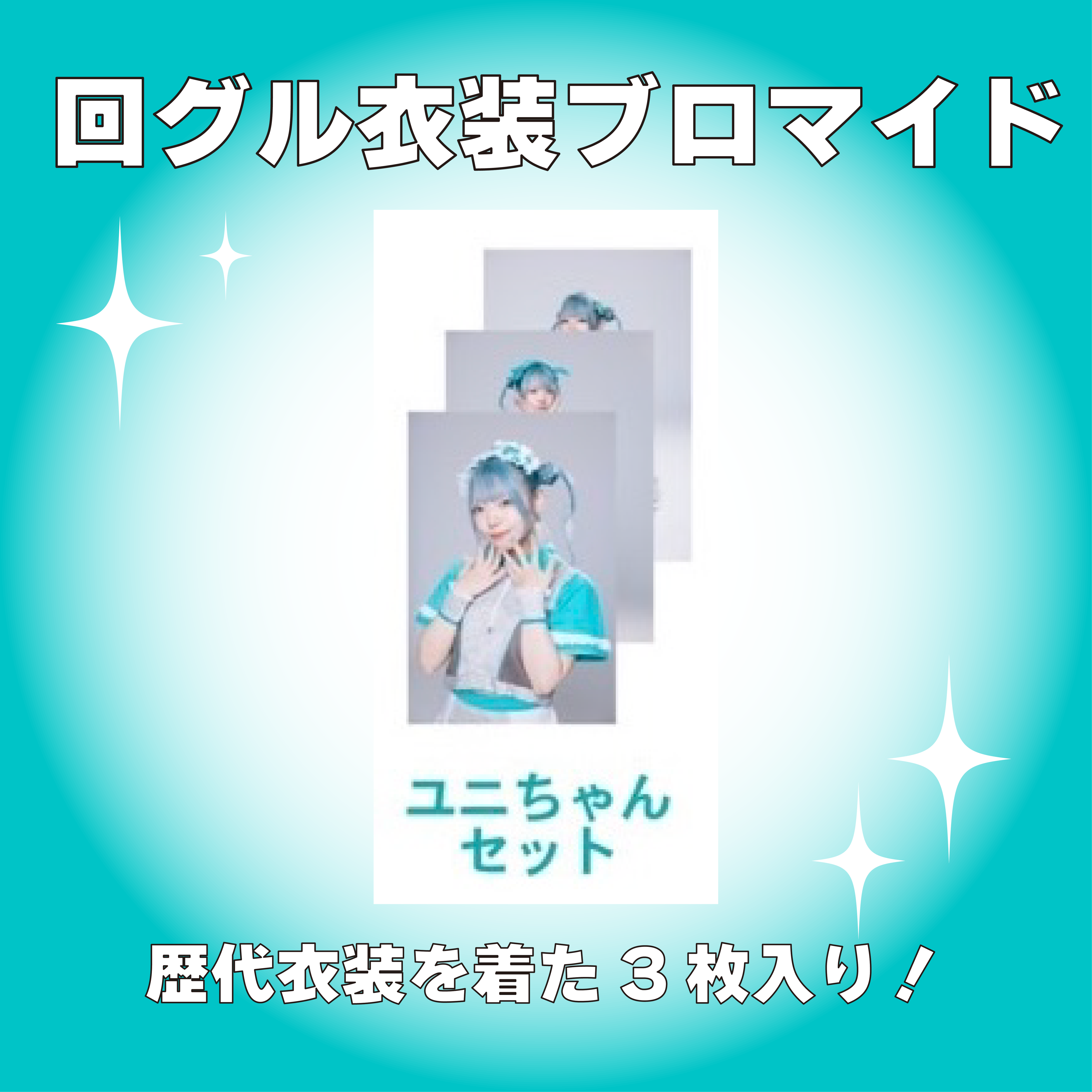 回グル衣装のブロマイド3枚セットです!数量限定! 歴代衣装3種類が一枚ずつ入っています!